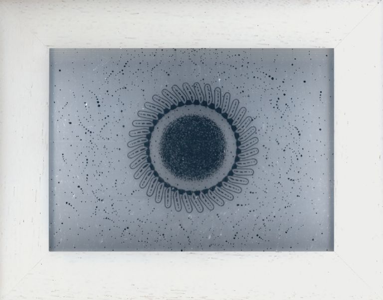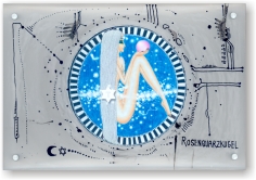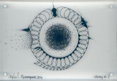 Objectbeschreibung: Thermosublimationsdruck, Rapidograph, Wachskreide in Plexiglas. 15,2 cm auf 10,2 cm Rückseitig signiert, 2014