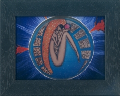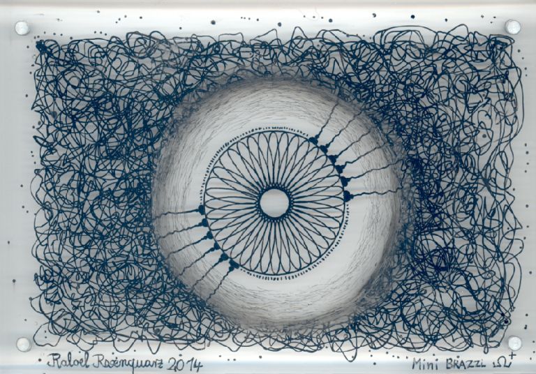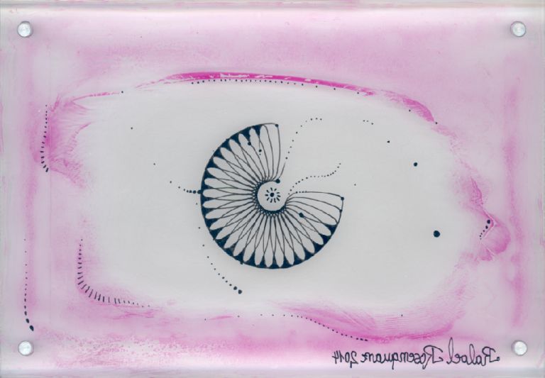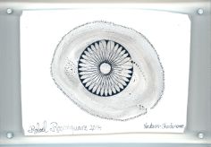 Objectbeschreibung: Rapidograph und Acryl in Plexiglas. 15,2 cm auf 10,2 cm spiegelsigniert, 2014