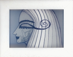 Objectbeschreibung: Rapidograph auf weise Folie in Plexiglas. 15,2 cm auf 10,2 cm signiert, 2014
