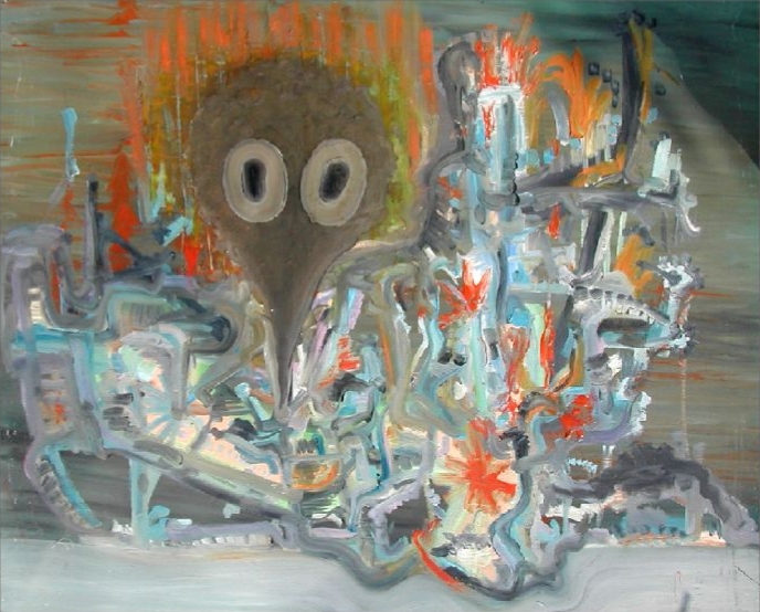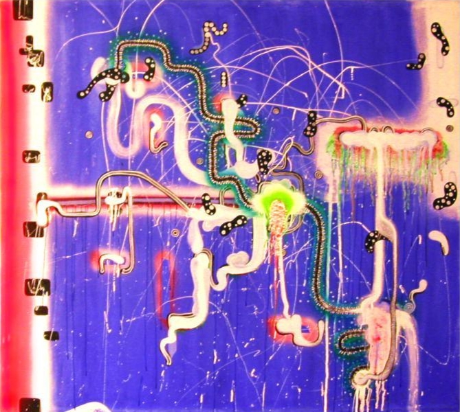 Objectbeschreibung: Öl, Acryl und Lack auf Leinwand. 130 cm auf 144 cm unsigniert, 1991
