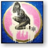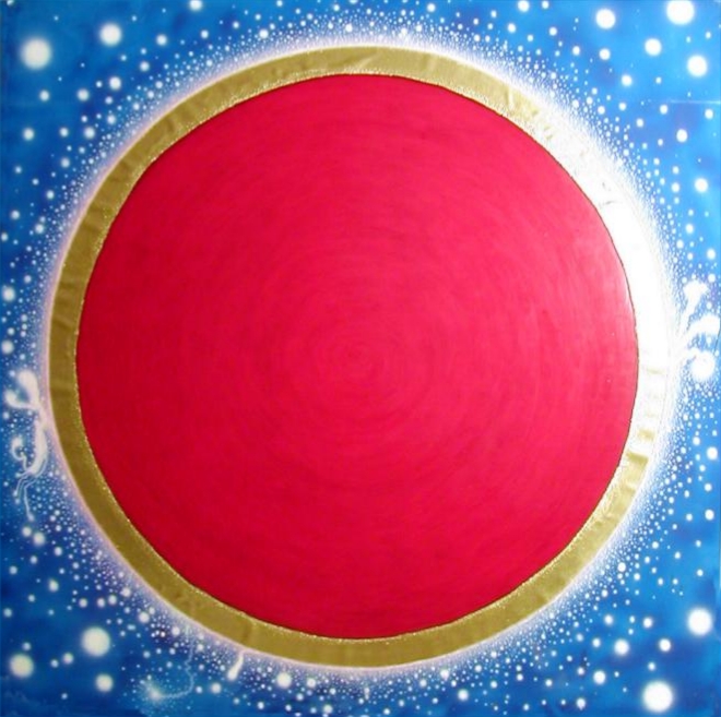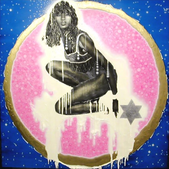 Werkeverz.: MAL/”Verflüssigung einer Rosenquarzkugel durch das Kosmische Geheimsperma einer graphitschwarzen, jüdisch ägyptischen Prinzessin”/1450*1450*45*/25 SOLD