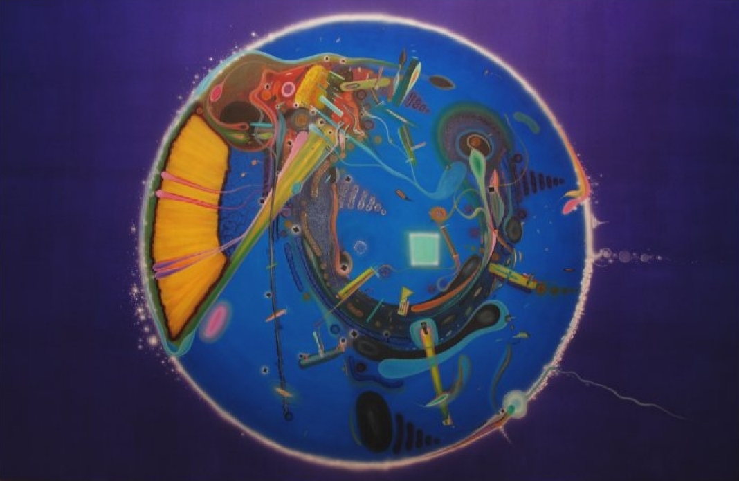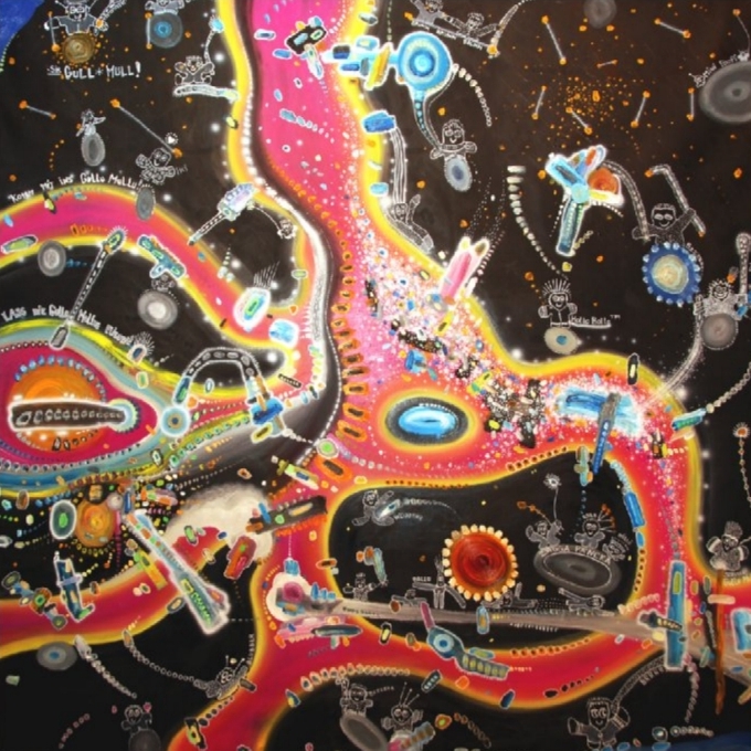 Werkeverz.: MAL/”The blobing Planet of Gullu Mullu with blobing Gullu Mullus”/1450*1450*45*/601 SOLD