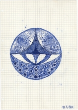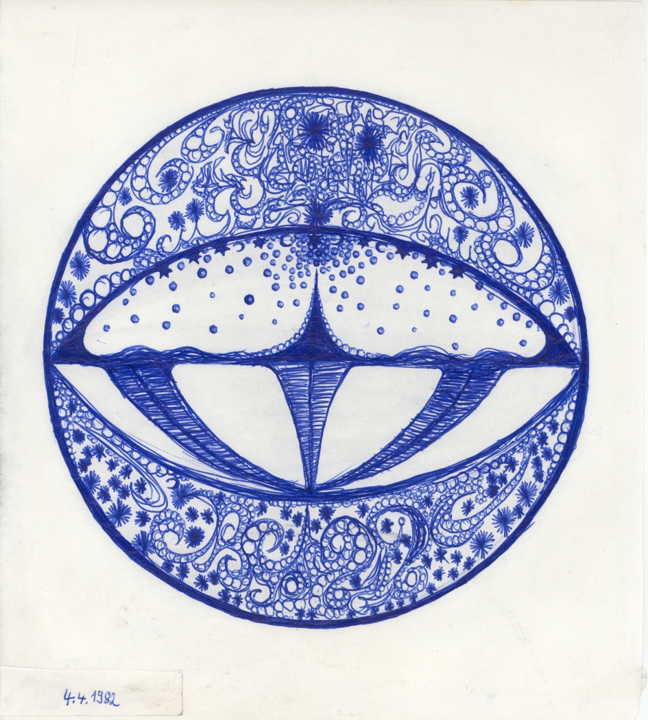 Objectbeschreibung: Kugelschreiber auf Papier. 18,5 cm auf 20,9 cm unsigniert, 4. 4. 1982