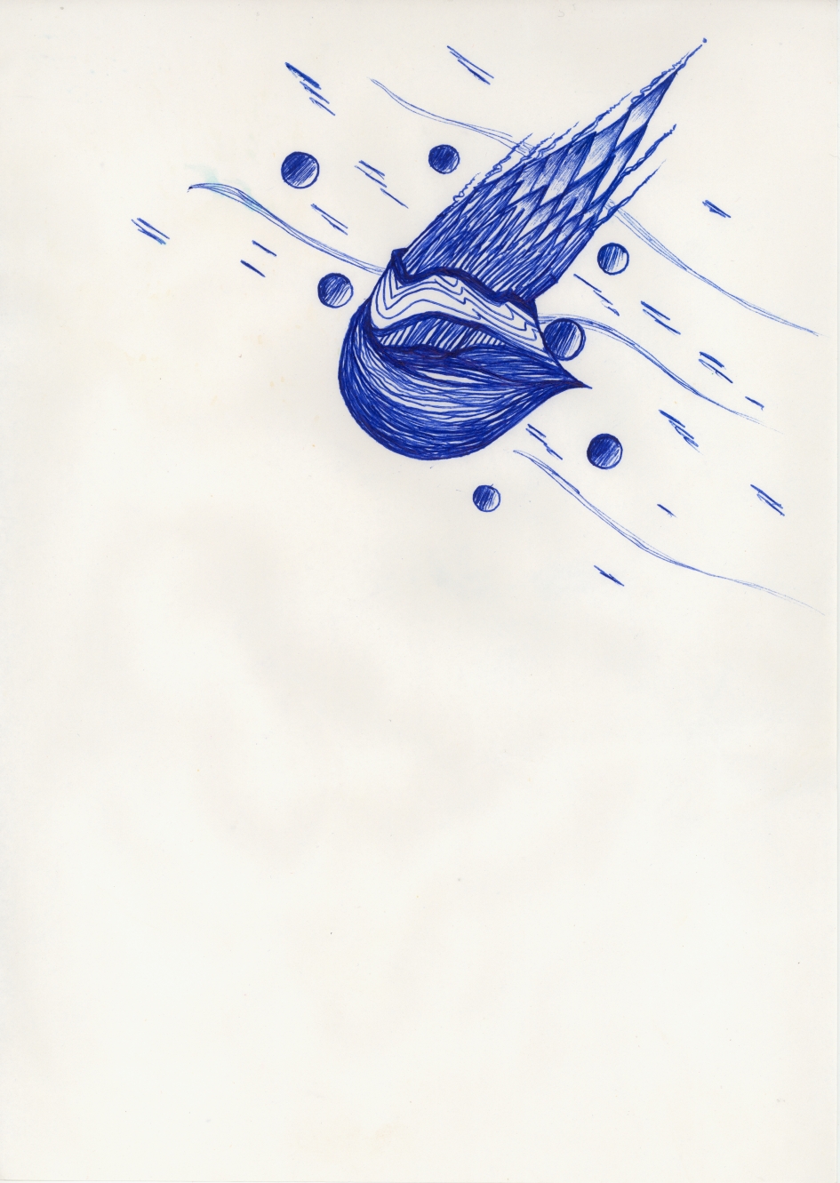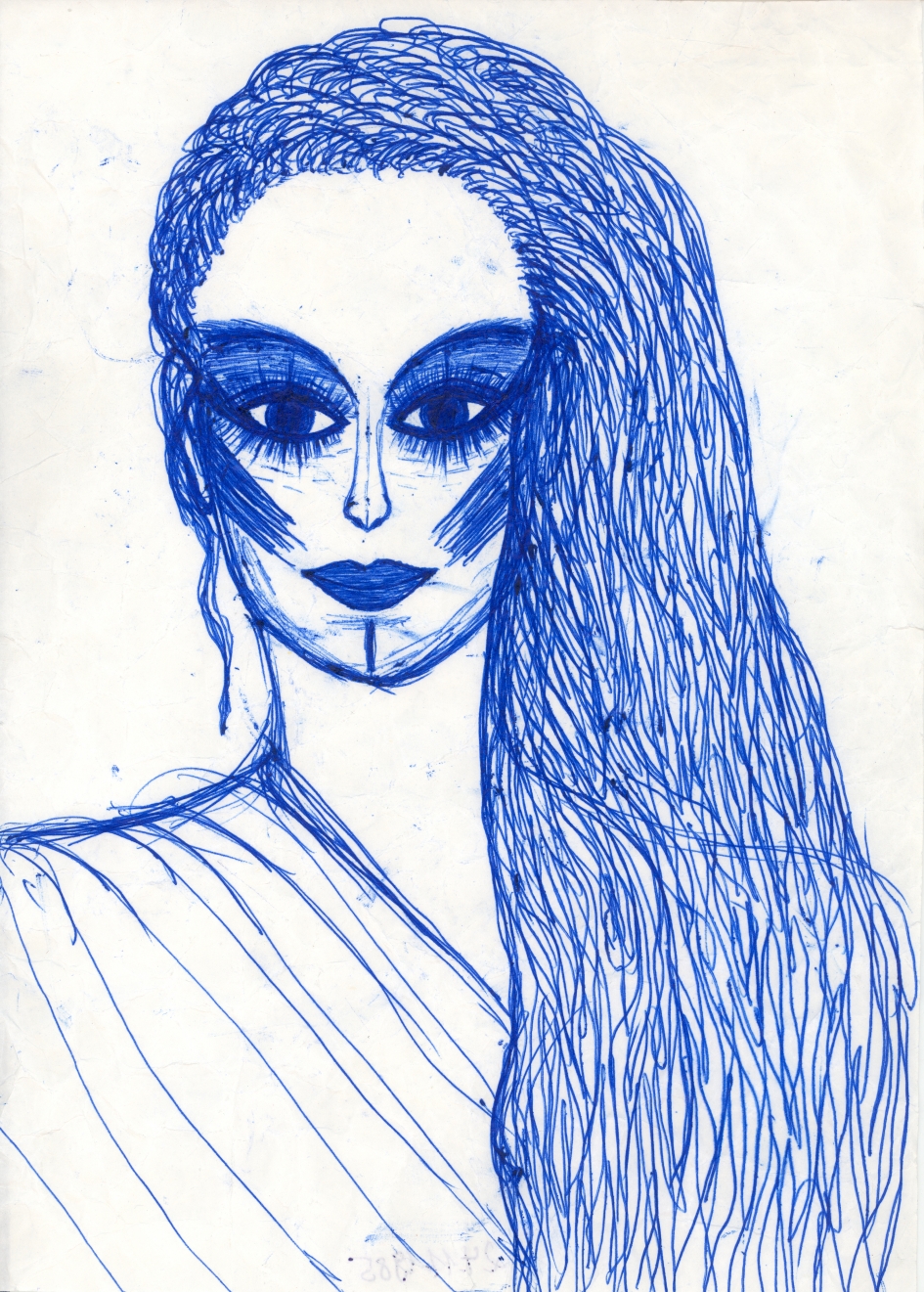 Objectbeschreibung: Kugelschreiber auf SM-Papier mit Crunchingeffekt. 21 cm auf 29,2 cm unsigniert, 24. 11. 1985