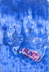 Objectbeschreibung: Tusche und Wasserfarben auf Papier. 21 cm auf 24,5 cm unsigniert, 1985