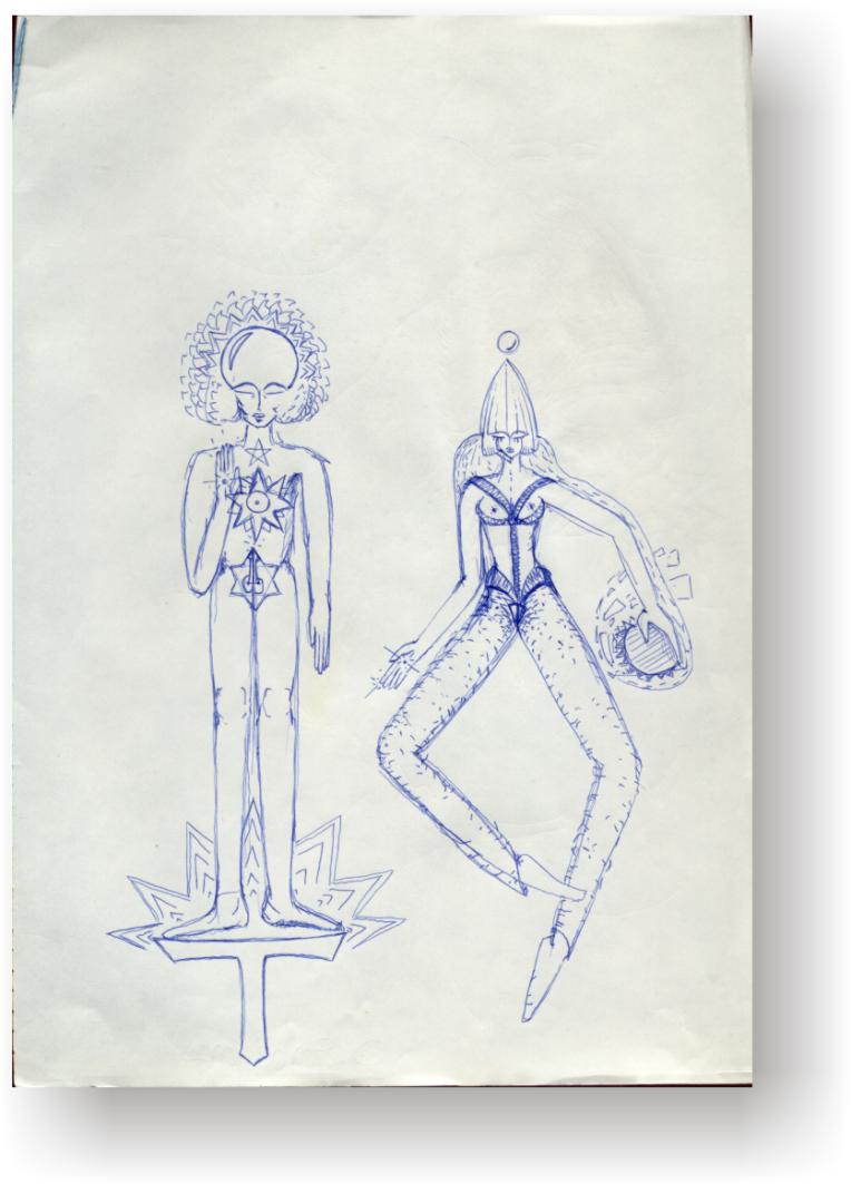 Objectbeschreibung: Kugelschreiber auf Papier (Blatt aus Skizzenbuch). 20,4 cm auf 29,4 cm unsigniert, 1988