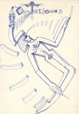 Objectbeschreibung: Kugelschreiber auf Papier (Fragment aus Skizzenbuch). 15,5 cm auf 20,5 cm unsigniert, 1988