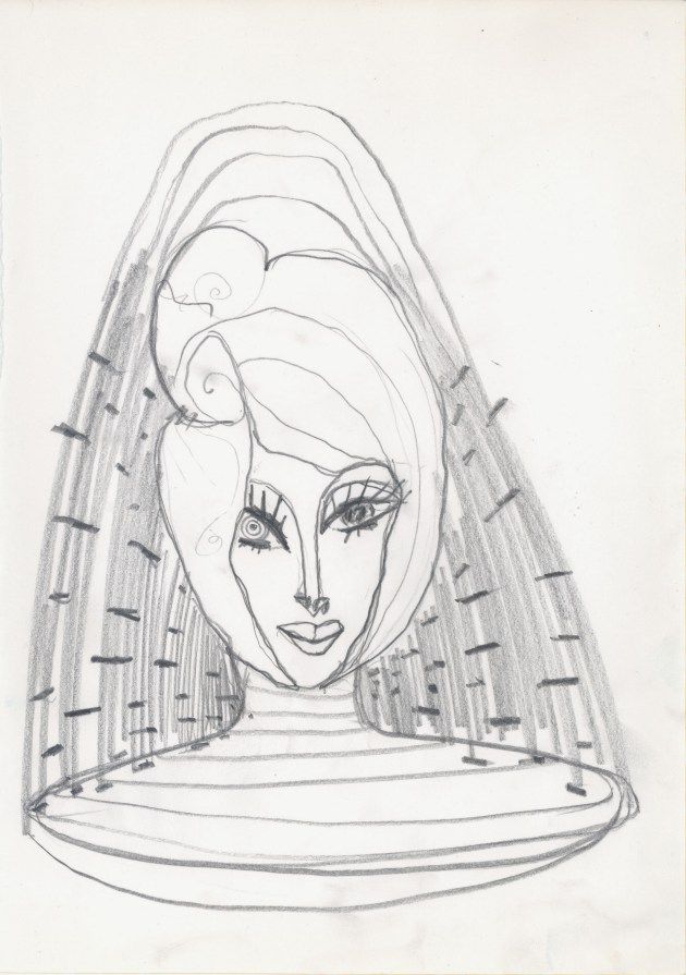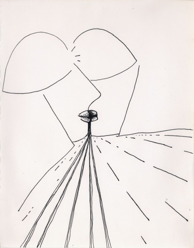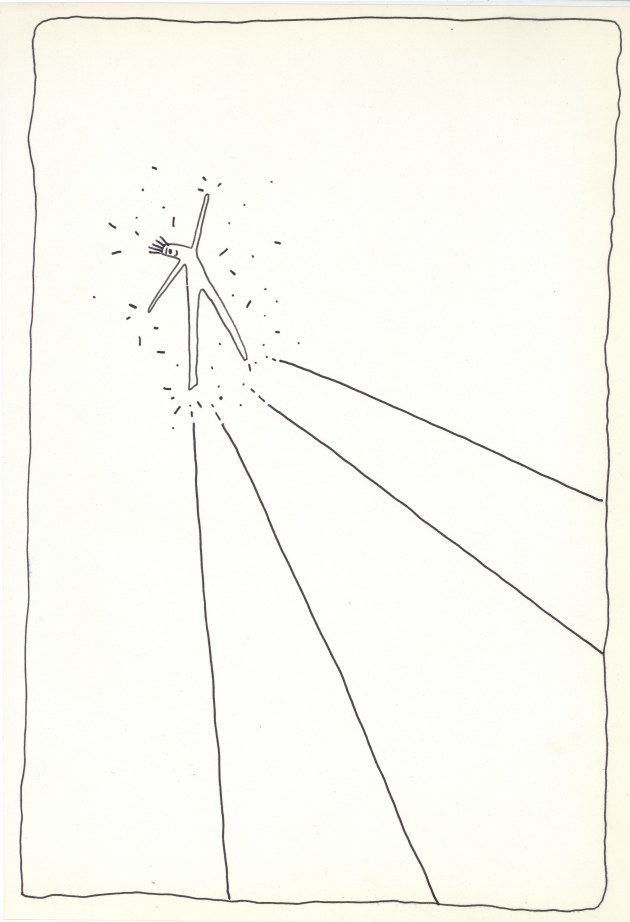 Objectbeschreibung: Tuschefüller auf Papier (Blatt aus Skizzenbuch). 20,5 cm auf 29,5 cm virtuelle Reflexivsignatur, 1990