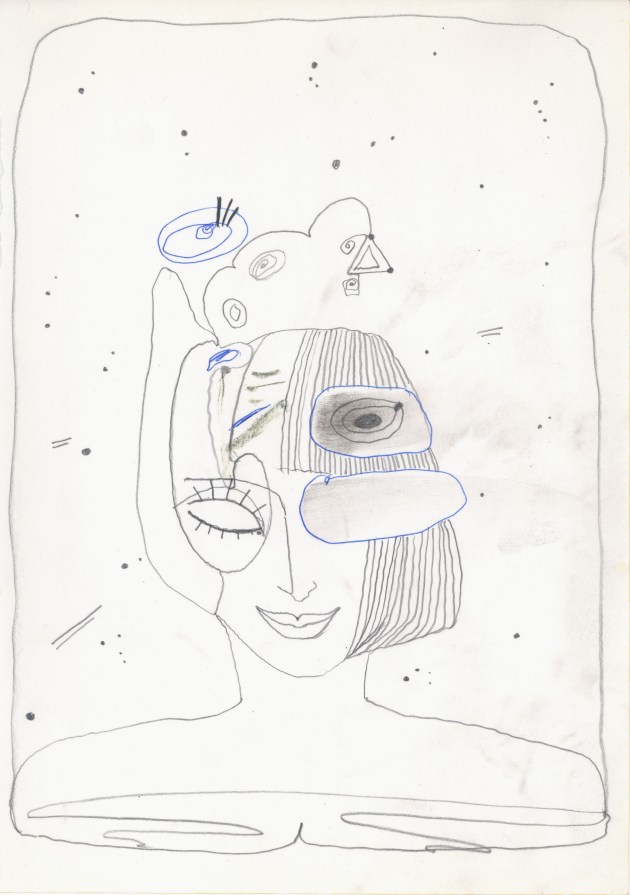 Objectbeschreibung: Bleistift, Kugelschreiber auf Papier (Blatt aus Skizzenbuch). 20,7 cm auf 29,4 cm unsigniert, 1990