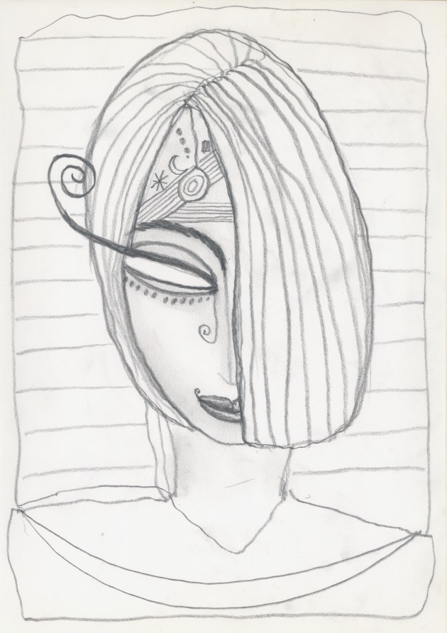 Objectbeschreibung: Tintenfüller auf Papier (Blatt aus Skizzenbuch). 20,6 cm auf 29,5 cm unsigniert, 1990
