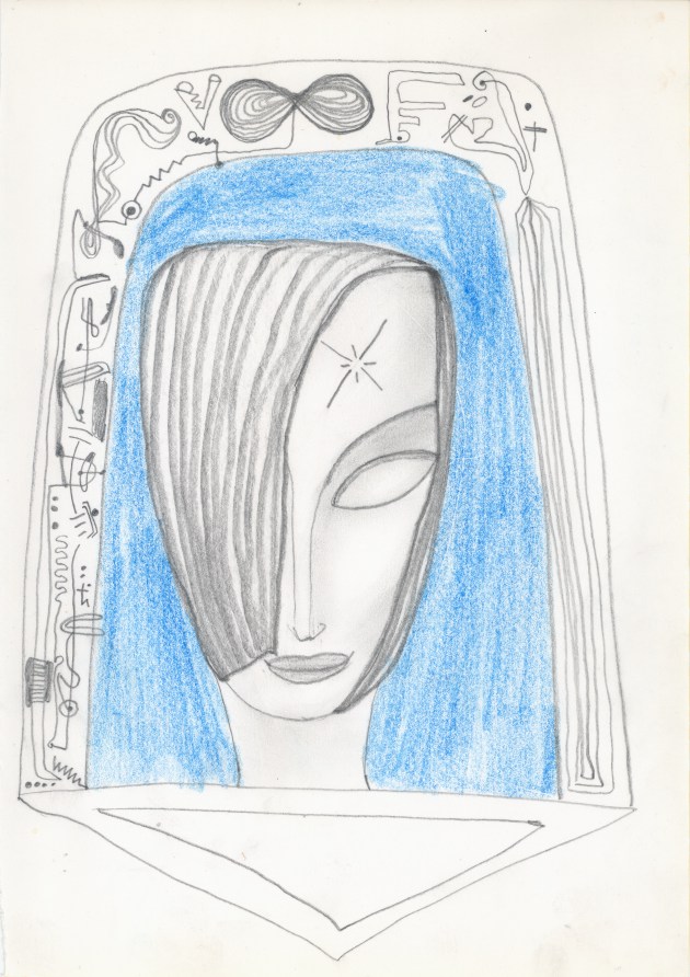 Objectbeschreibung: Tuschefüller, Buntstifte, Bleistift auf Papier (Blatt aus Skizzenbuch). 20,7 cm auf 29,5 cm unsigniert, 1990