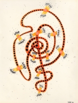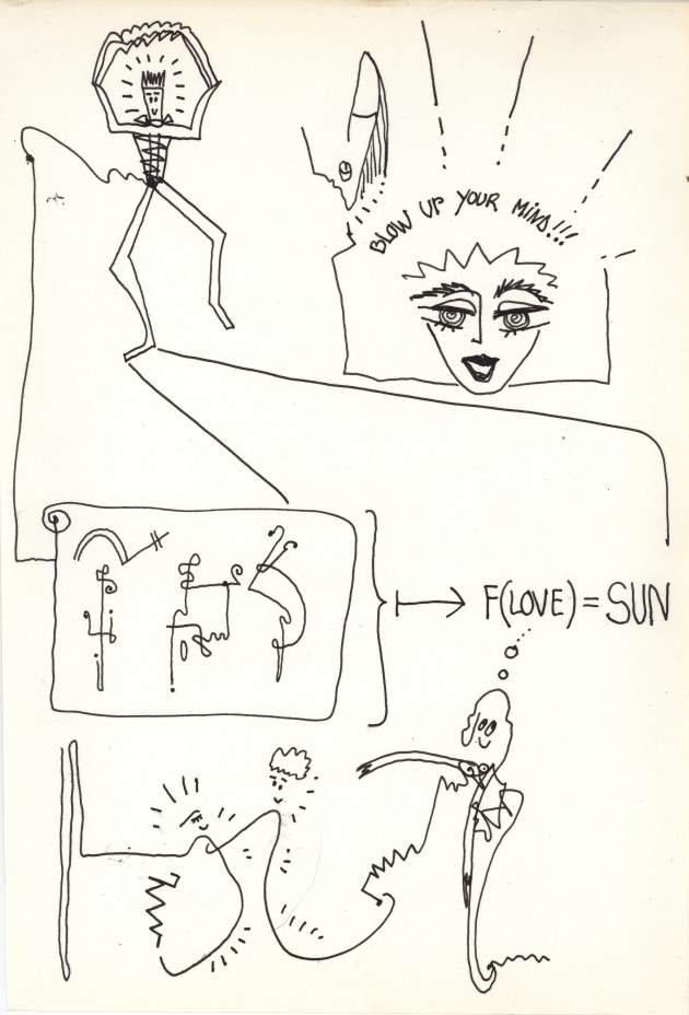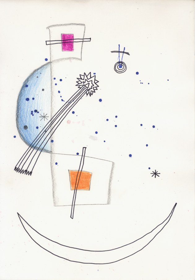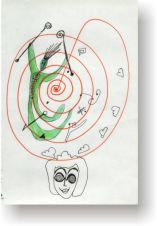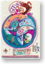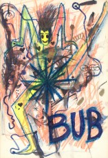 Objectbeschreibung: Tuschefüller und Neon-Buntstifte auf Papier (Blatt aus Skizzenbuch). 20,5 cm auf 29,5 cm unsigniert, 1990