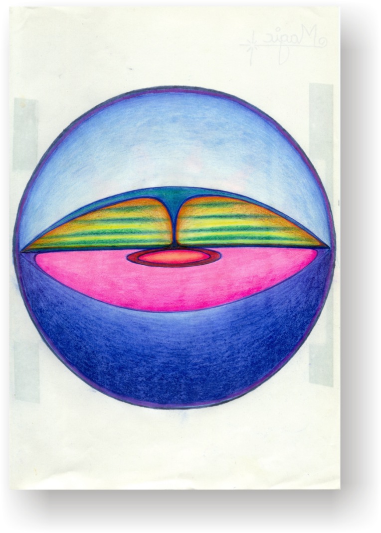 Objectbeschreibung: Bleistift und Buntstifte. 20,7 cm auf 29,4 cm unsigniert, 1990