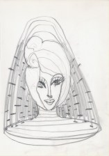 Objectbeschreibung: Filzstifte und Tusche auf Papier. (Blatt aus Skizzenbuch) 29,7 cm auf 20,5 cm unsigniert, 1990