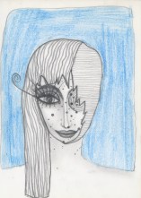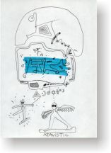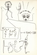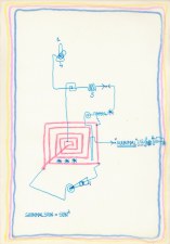 Objectbeschreibung: Filzstifte, Isolierband, Tusche auf Papier (Blatt aus Skizzenbuch). 20,4 cm auf 29,5 cm unsigniert, 1990
