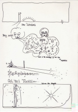 Objectbeschreibung: Filzschreiber, Holzstifte, Füller und Tusche auf Fotoalbumkarton. (Blatt aus Skizzenbuch) 28,8 cm auf 20,7 cm unsigniert, 1990