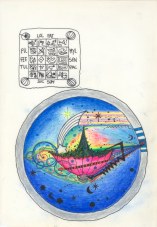 Objectbeschreibung: Wasserfarben, Filzstifte und Tusche auf Papier. (Blatt aus Skizzenbuch) 29,7 cm auf 20,5 cm unsigniert, 1990