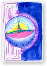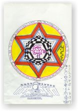 Objectbeschreibung: Übermalte Farbkopie auf Innenteil einer Pizzaschachtel. 20 cm auf 25,7 cm unsigniert, 1990