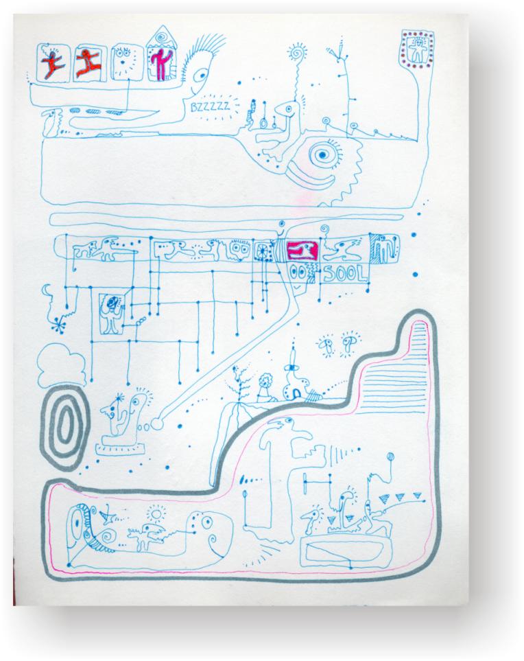 Objectbeschreibung: Tintenkugelschreiber und Lackstift auf Papier. (Blatt aus Skizzenbuch) 27 cm auf 21 cm unsigniert, 1991