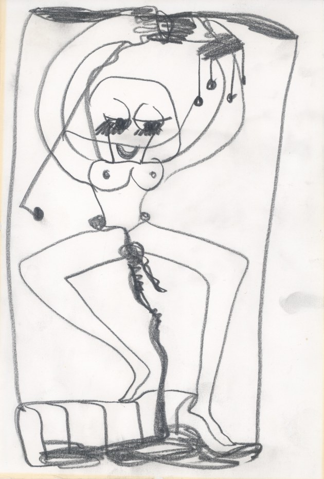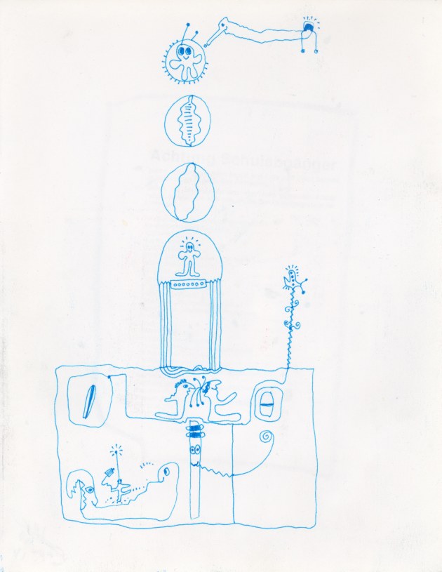Objectbeschreibung: Kugelschreiber auf Papier (Blatt aus Skizzenbuch). 19,5 cm auf 29,5 cm unsigniert, 1991
