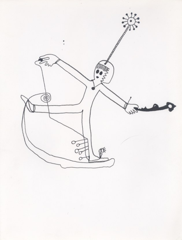 Objectbeschreibung: Tuschefüller und Grafikmarker auf Papier (Blatt aus Skizzenbuch). 20 cm auf 27 cm unsigniert, 1991