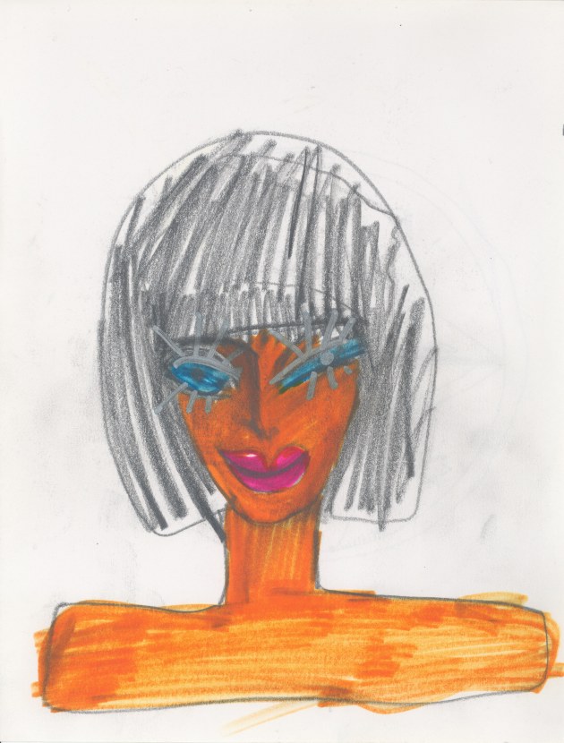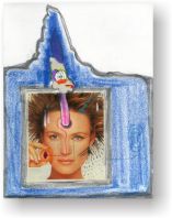 Objectbeschreibung: Buntstifte, Filzstifte, Füller, Wachskreide und Collageelement auf Papier. (Blatt aus Skizzenbuch) 20,9 cm auf 29,6 cm unsigniert, 1991