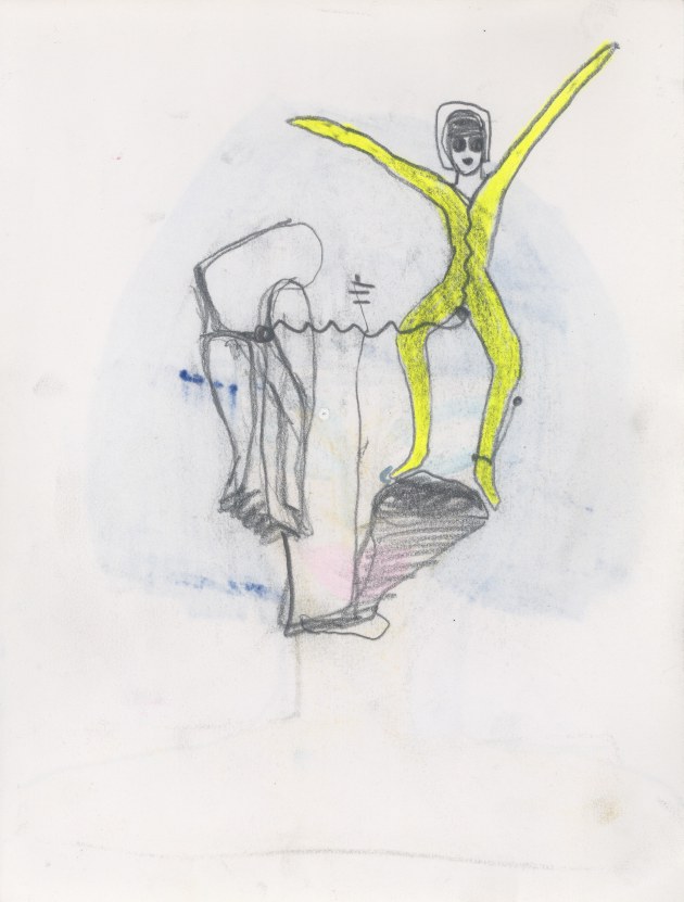 Objectbeschreibung: Buntstift auf Papier (Blatt aus Skizzenbuch). 19,5 cm auf 29,5 cm unsigniert, 1991