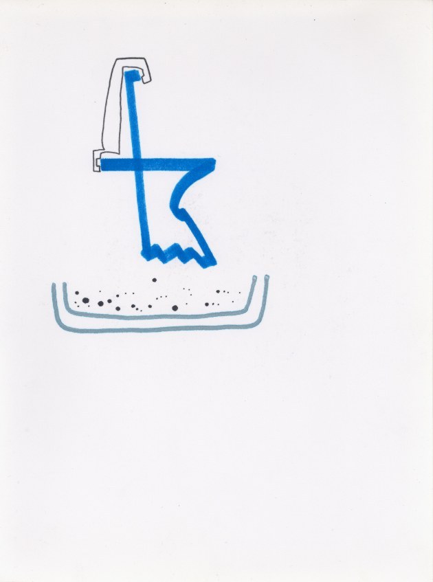 Objectbeschreibung: Kugelfüller und Grafikmarker auf Papier (Blatt aus Skizzenbuch). 20,5 cm auf 27 cm unsigniert, 1991