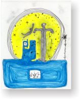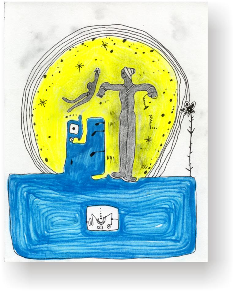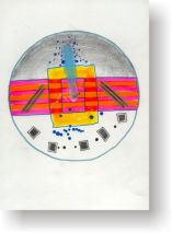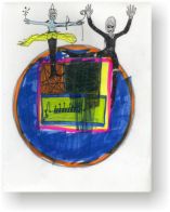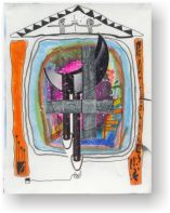 Objectbeschreibung: Tusche, Filzstifte, Wachskreide und Bleistift mit Collage-Material. (Blatt aus Skizzenbuch) 27 cm auf 21 cm unsigniert, 1991
