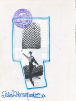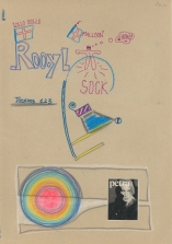 Objectbeschreibung: Collageelemente, Filzstift, Stempel auf Papier (Blatt aus Skizzenbuch). 20,5 cm auf 27 cm signiert, 1991