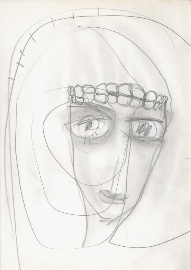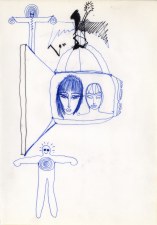 Objectbeschreibung: Kugelschreiber auf Papier (Blatt aus Skizzenbuch). 20,7 cm auf 29,4 cm unsigniert, 1992