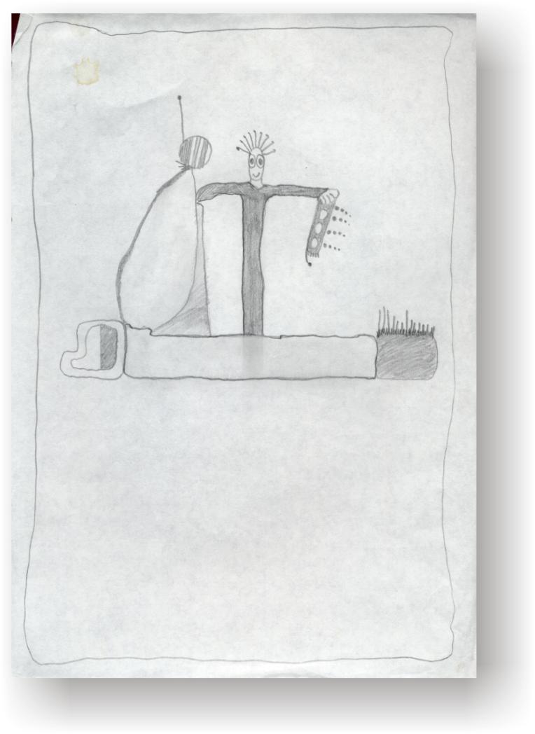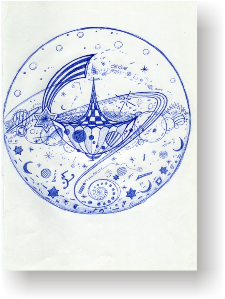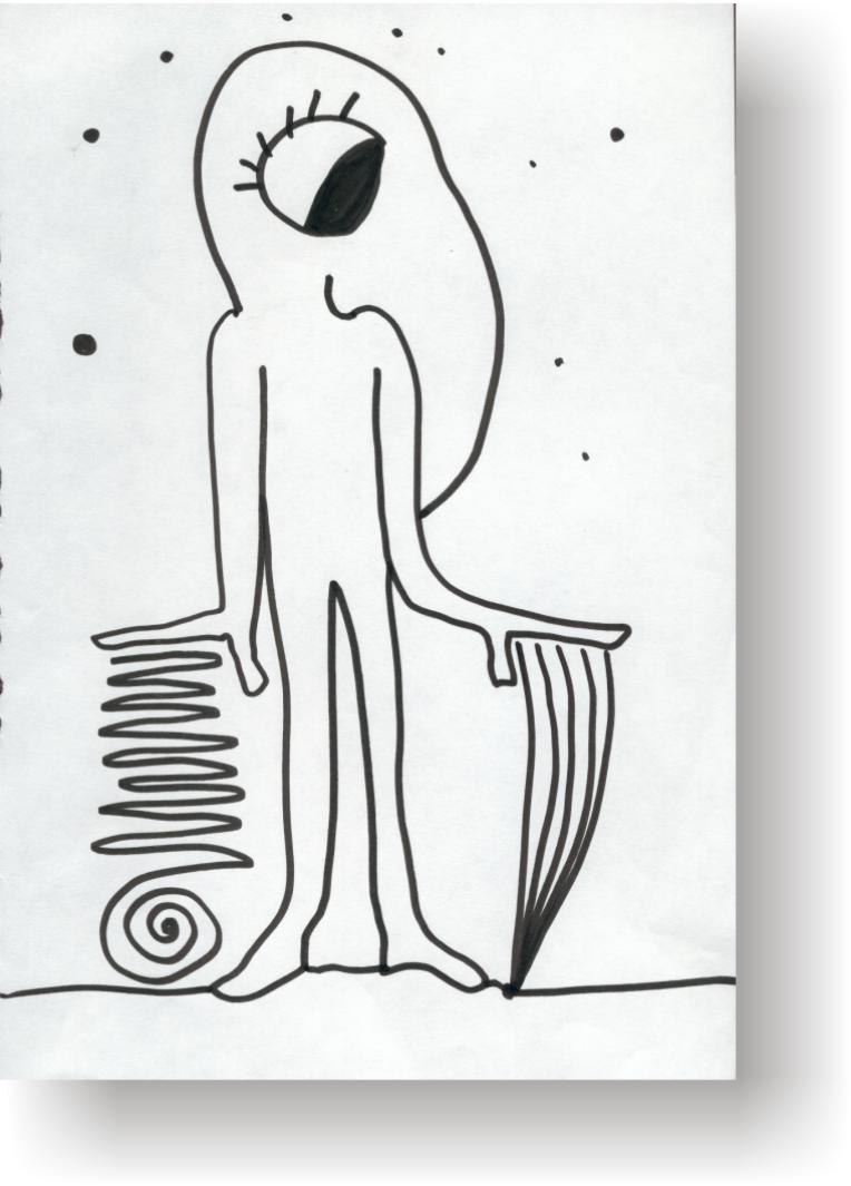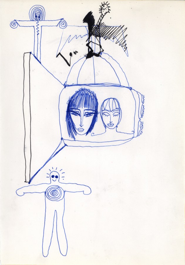 Objectbeschreibung: Kugelschreiber auf Papier (Blatt aus Skizzenbuch). 20,6 cm auf 29,5 cm unsigniert, 1992