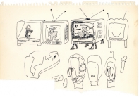 Objectbeschreibung: Tusche, Kugelschreiber auf Papier (Blatt aus Skizzenbuch). 20,5 cm auf 29,4 cm unsigniert, 1992