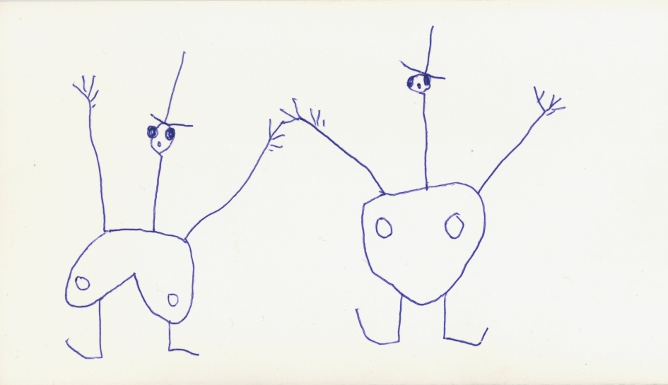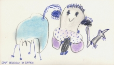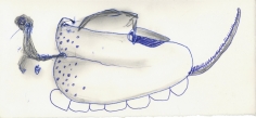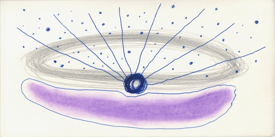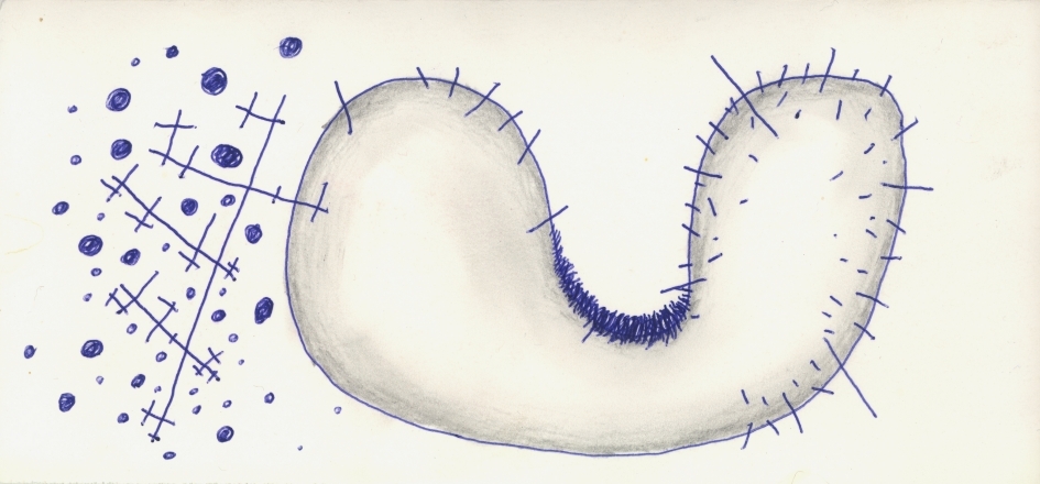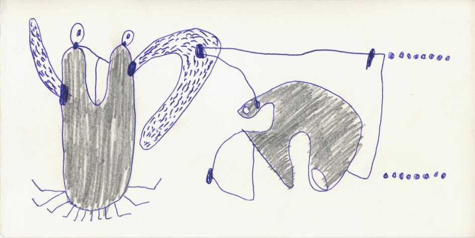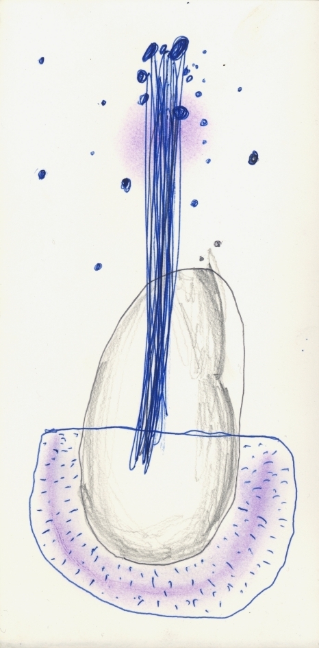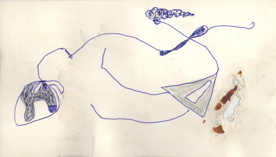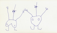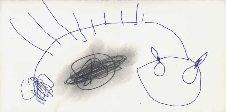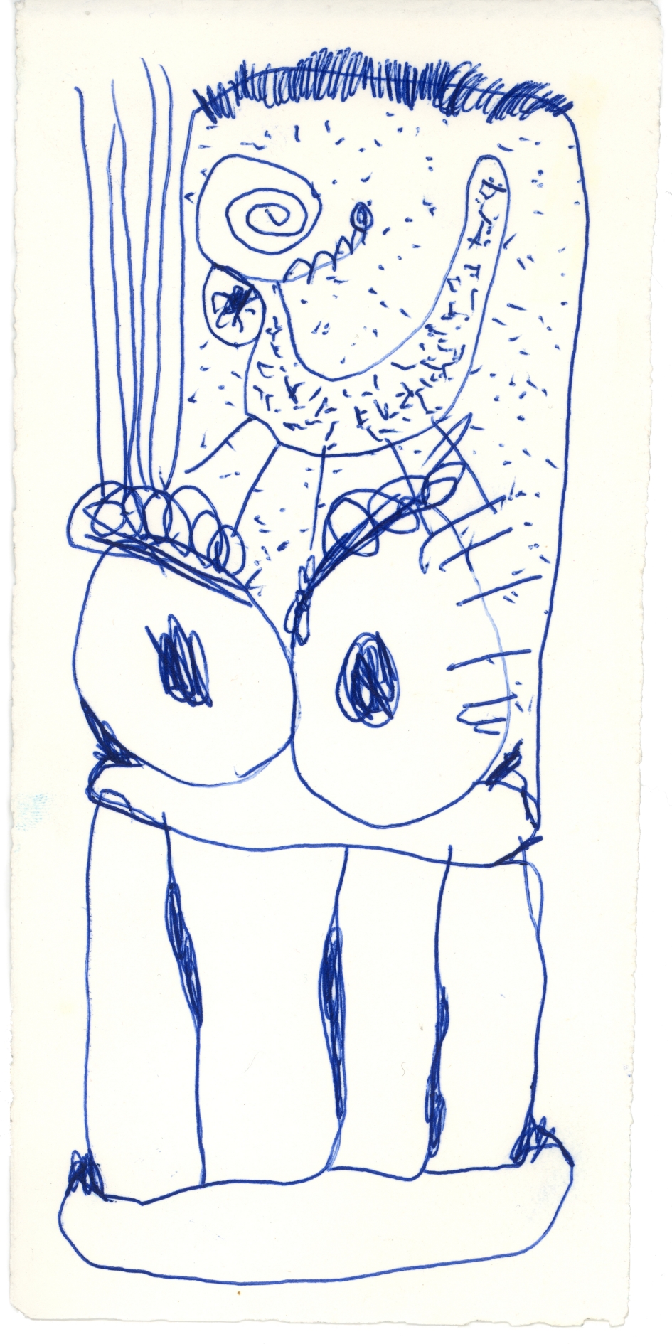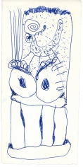 Objectbeschreibung: Kugelschreiber, Bleistift und Farbkreide auf Bütten. 20 cm auf 11,5 cm unsigniert, 1997