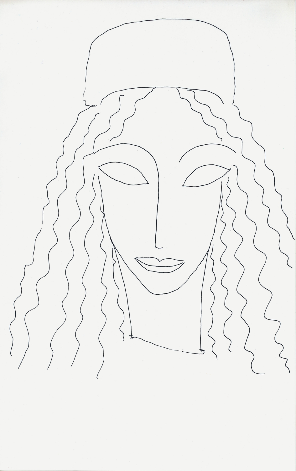 Objectbeschreibung: Kugelschreiber auf Bütten. 20 cm auf 11,5 cm unsigniert, 1997