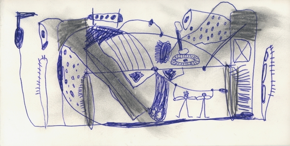 Objectbeschreibung: Kugelschreiber, Eddingstift, Rapidograph auf Papier. 20 cm auf 29,7 cm unsigniert, 1997