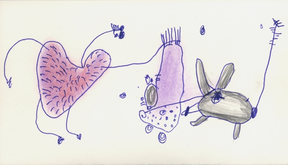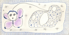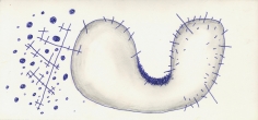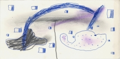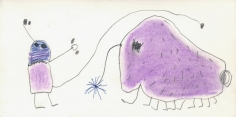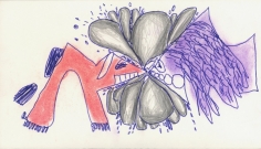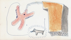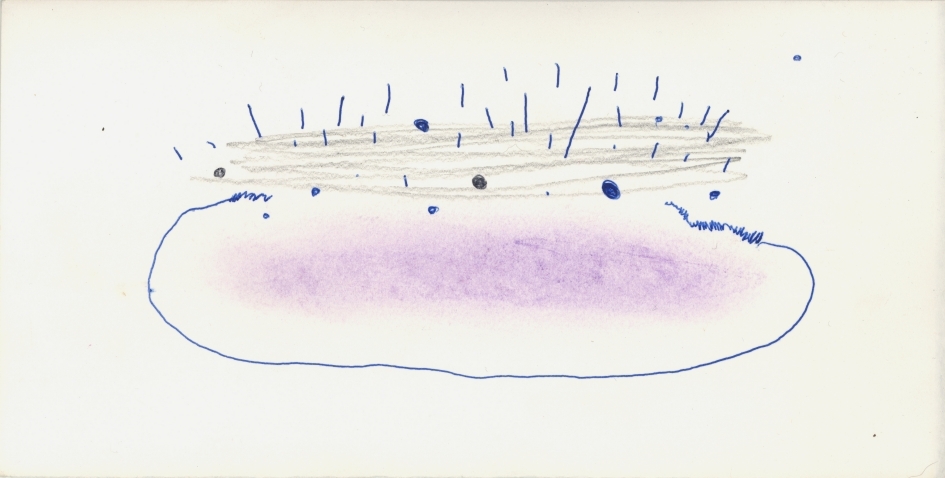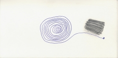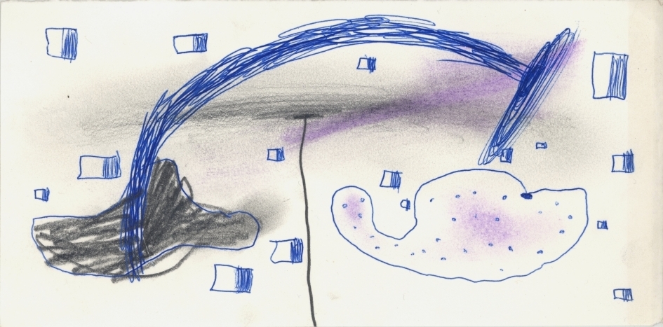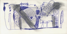 Objectbeschreibung: Kugelschreiber, Bleistift und Farbkreide auf Bütten. 11,5 cm auf 23 cm unsigniert, 1997