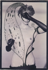 Objectbeschreibung: Mit Rapidograph und Lackstift überarbeitetes Originalblatt aus einem Modemagazin. 18 cm auf 26,2 cm unsigniert, 1997