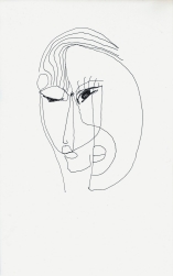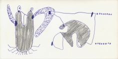 Objectbeschreibung: Kugelschreiber und Bleistift auf Bütten. 20 cm auf 11,5 cm unsigniert, 1997