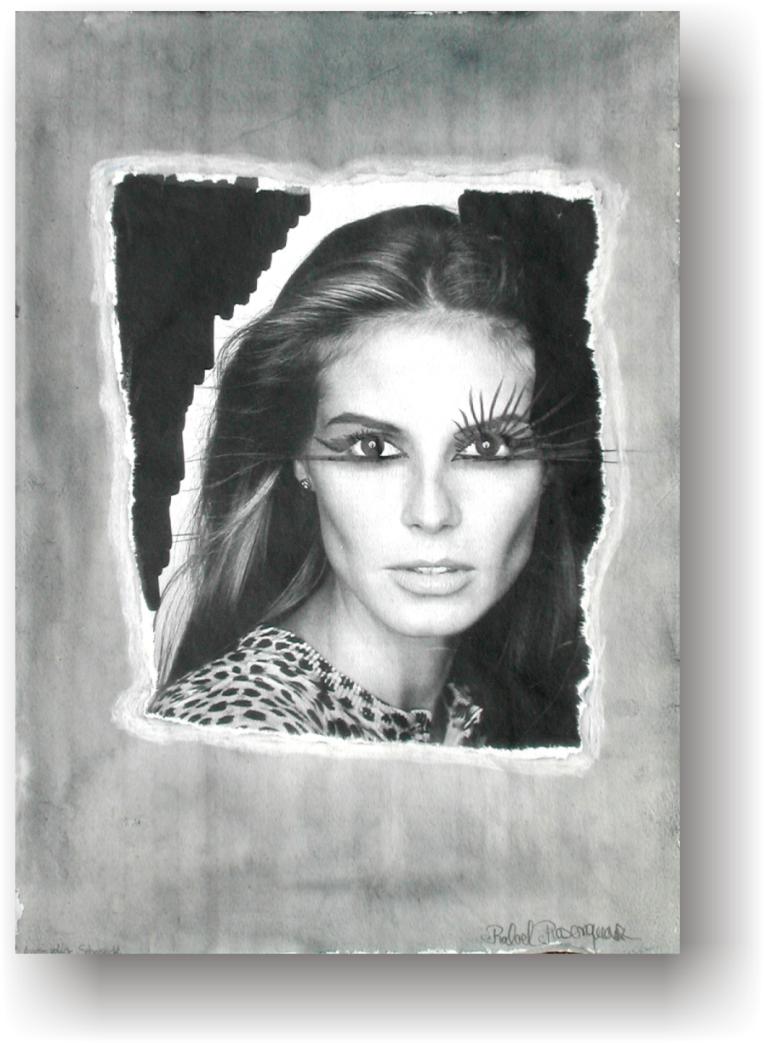 Objectbeschreibung: Originalblatt aus einer Modezeitschrift, bearbeitet mit Ölkreide, Tusche und Lack- stift, zuzüglich einem Collageelement. 27,8 cm auf 20 cm unsigniert, 1999