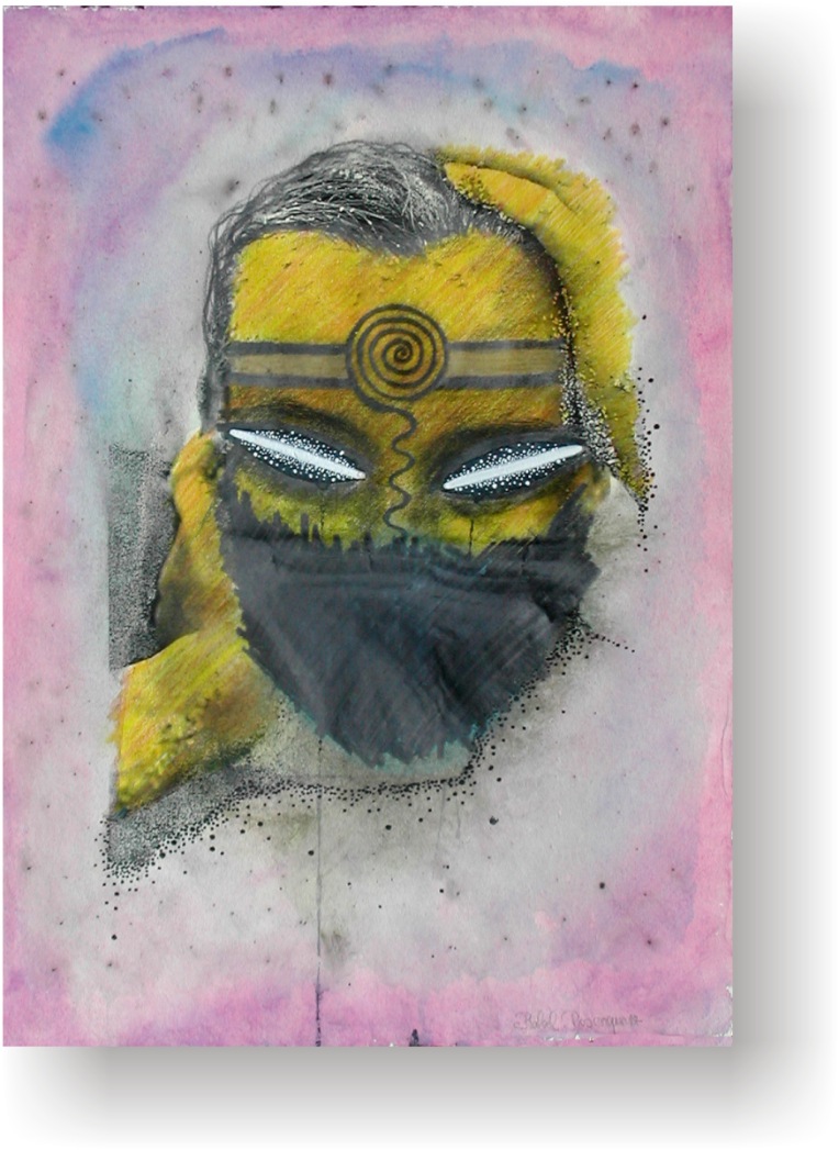 Objectbeschreibung: Aquarellfarben, Bleistift, Lackstift und Ölkreide mit analoger Kopiertechnik auf Büttenpapier. (handgeschöpftes Büttenpapier mit original Büttenrand) 41,5 cm auf 30 cm unsigniert, Nov. 1999