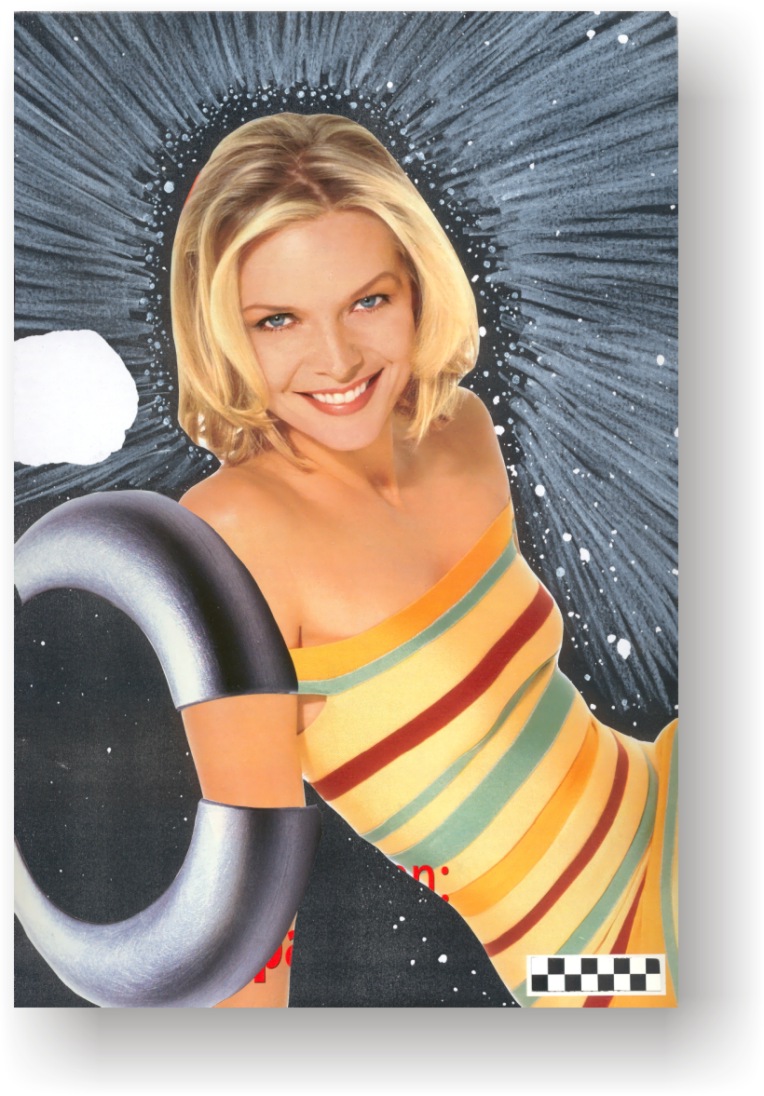 Objectbeschreibung: Originalblatt aus dem "Playboy", bearbeitet mit Lackstift und Tusche, zuzüglich einem Collageelement. 27,8 cm auf 20,9 cm unsigniert, 1999