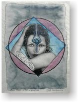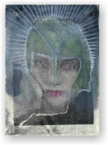 Objectbeschreibung: Aquarellfarben, Bleistift, Lackstift und Eisengallustinte mit analoger Kopiertechnik auf Büttenpapier. (handgeschöpftes Büttenpapier mit original Büttenrand) 41 cm auf 29,5 cm signiert, Nov. 1999