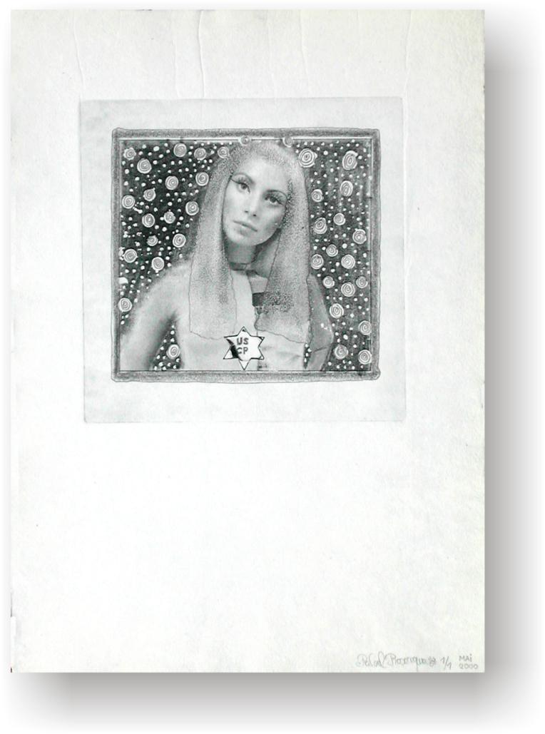 Objectbeschreibung: Bleistift mit manipuliertem Digitaldruck auf Büttenpapier. (handgeschöpftes Büttenpapier mit original Büttenrand) 41 cm auf 29,5 cm signiert, Mai 2000