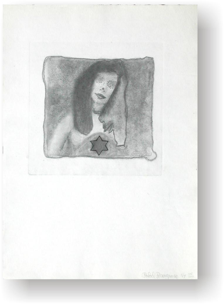 Objectbeschreibung: Holzstift, Bleistift und Tusche mit analoger Kopiertechnik auf Büttenpapier. (handgeschöpftes Büttenpapier mit original Büttenrand) 41 cm auf 29,5 cm signiert, Mai 2000