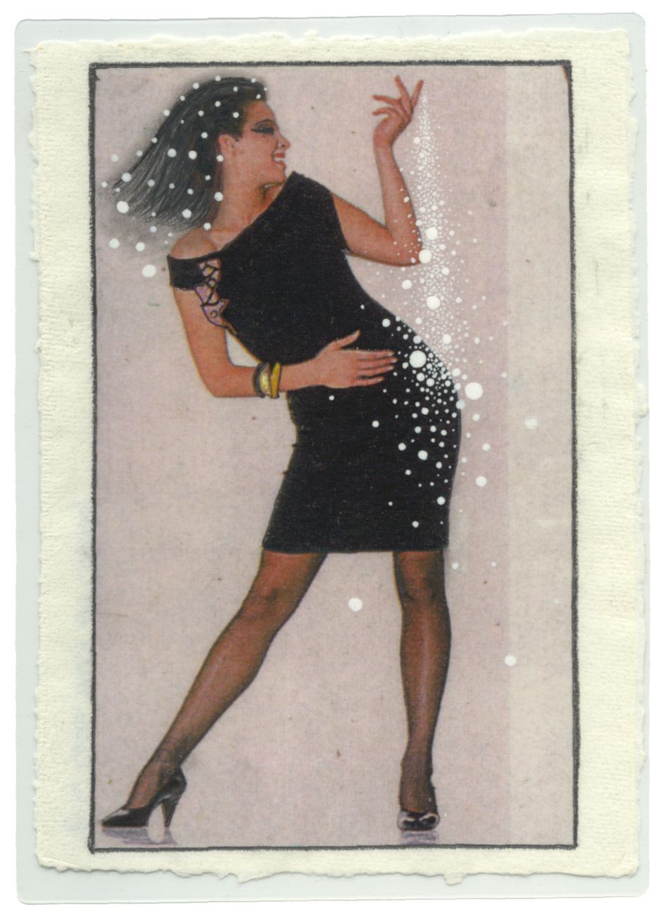 Objectbeschreibung: Collage mit Digitaldruck, geleimt auf Bütten und in Kunststoff eingeschweißt. 21,5 cm auf 15,5 cm signiert auf Rückseite, 2000