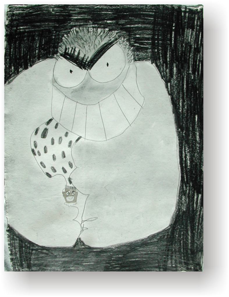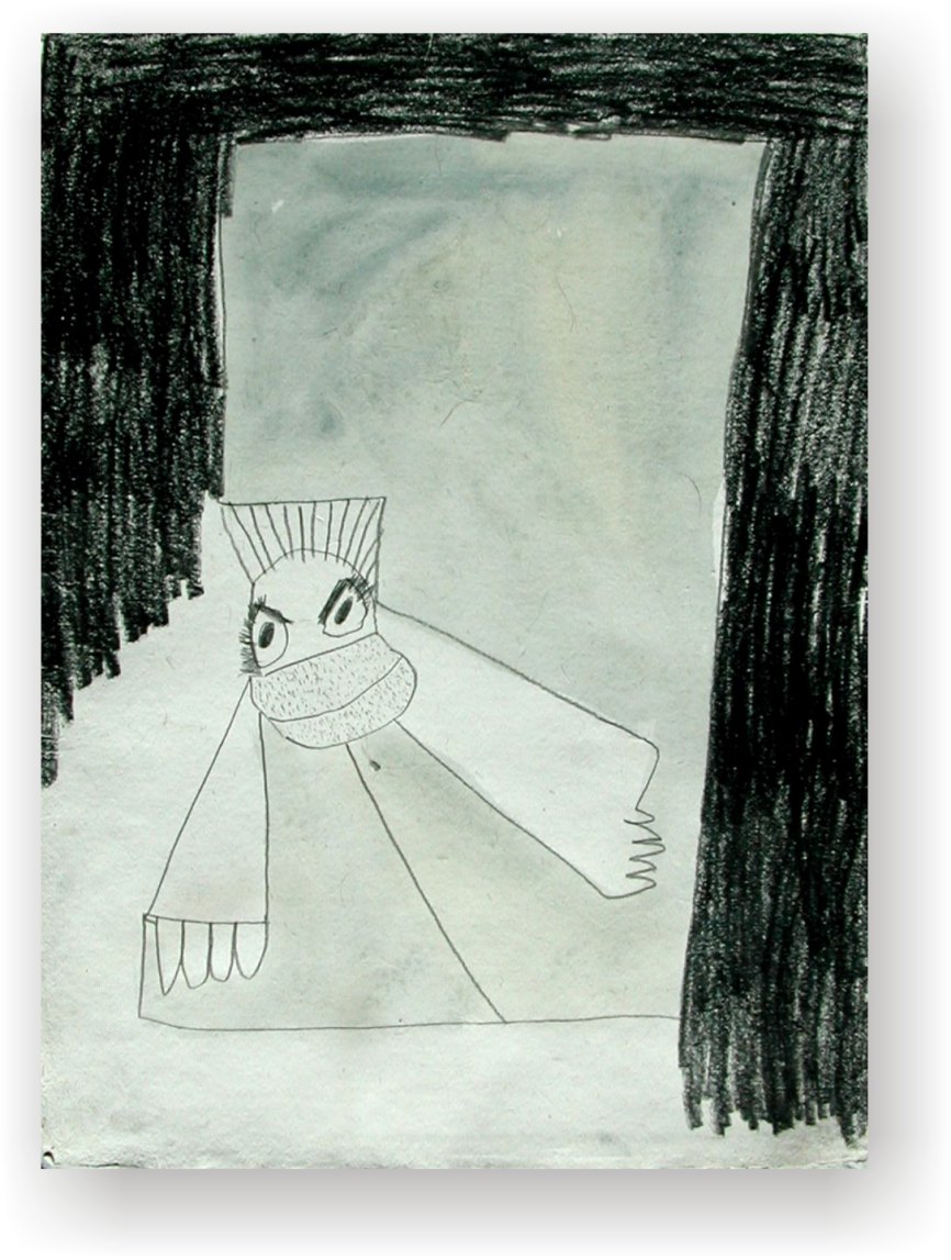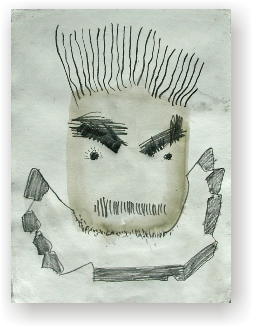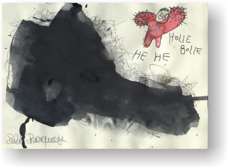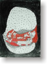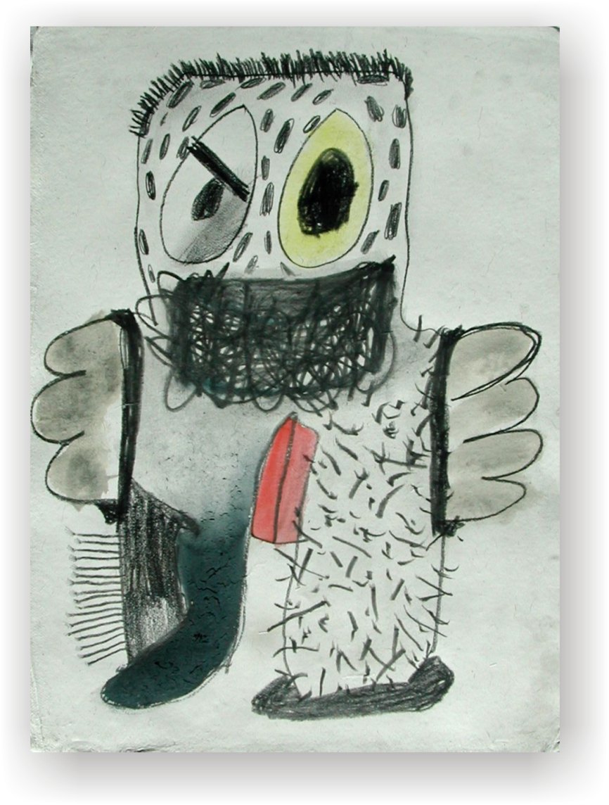 Objectbeschreibung: Tusche und Wachskreide auf Tintenstrahldruck. 29,7 cm auf 21 cm signiert, 2001