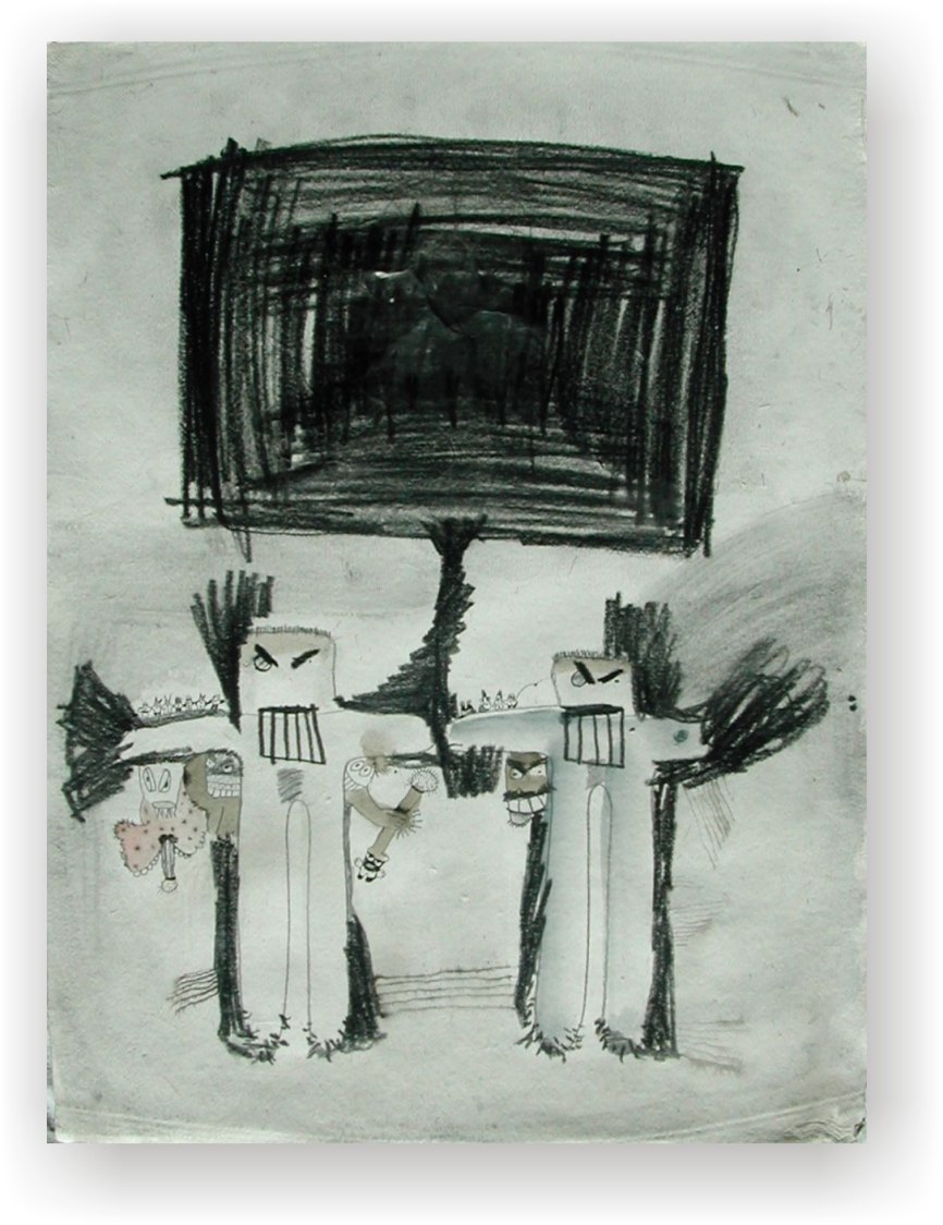 Objectbeschreibung: Graphitstifte, Aquarellfarbe und Buntstifte auf schweres Büttenpapier. 77 cm auf 57 cm unsigniert, 2001