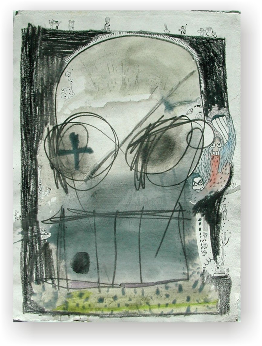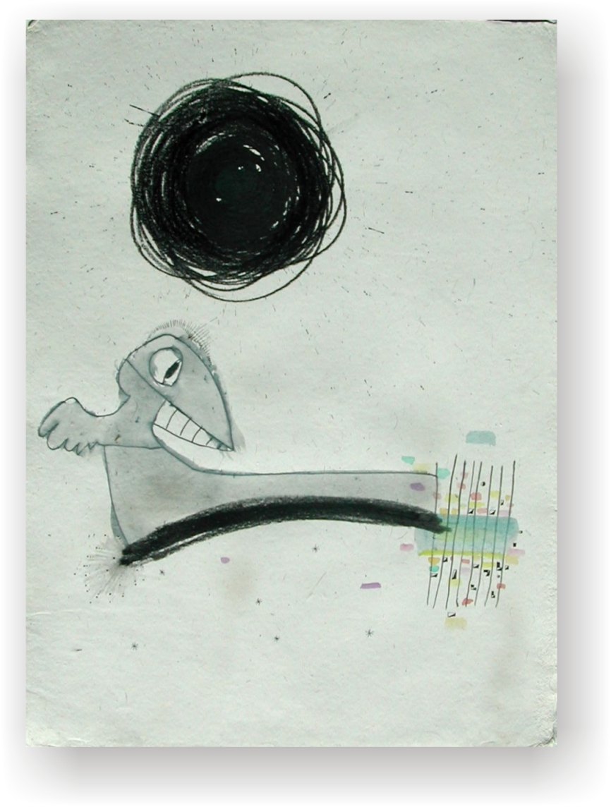 Objectbeschreibung: Wasserfarben, Tusche und Bleistift. 29,7 cm auf 21 cm unsigniert, 2001