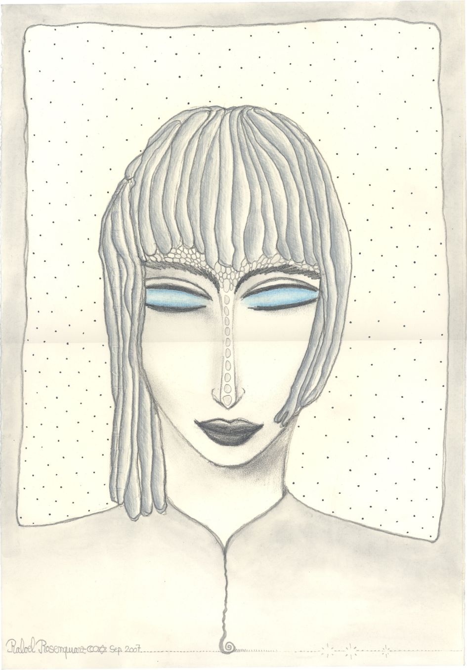 Objectbeschreibung: Bleistift, Rapidograph und Buntstifte auf Digiprint. Papier: Römerturm Dokumentbütten. 29,5 cm auf 42,5 cm signiert, Sep. 2007